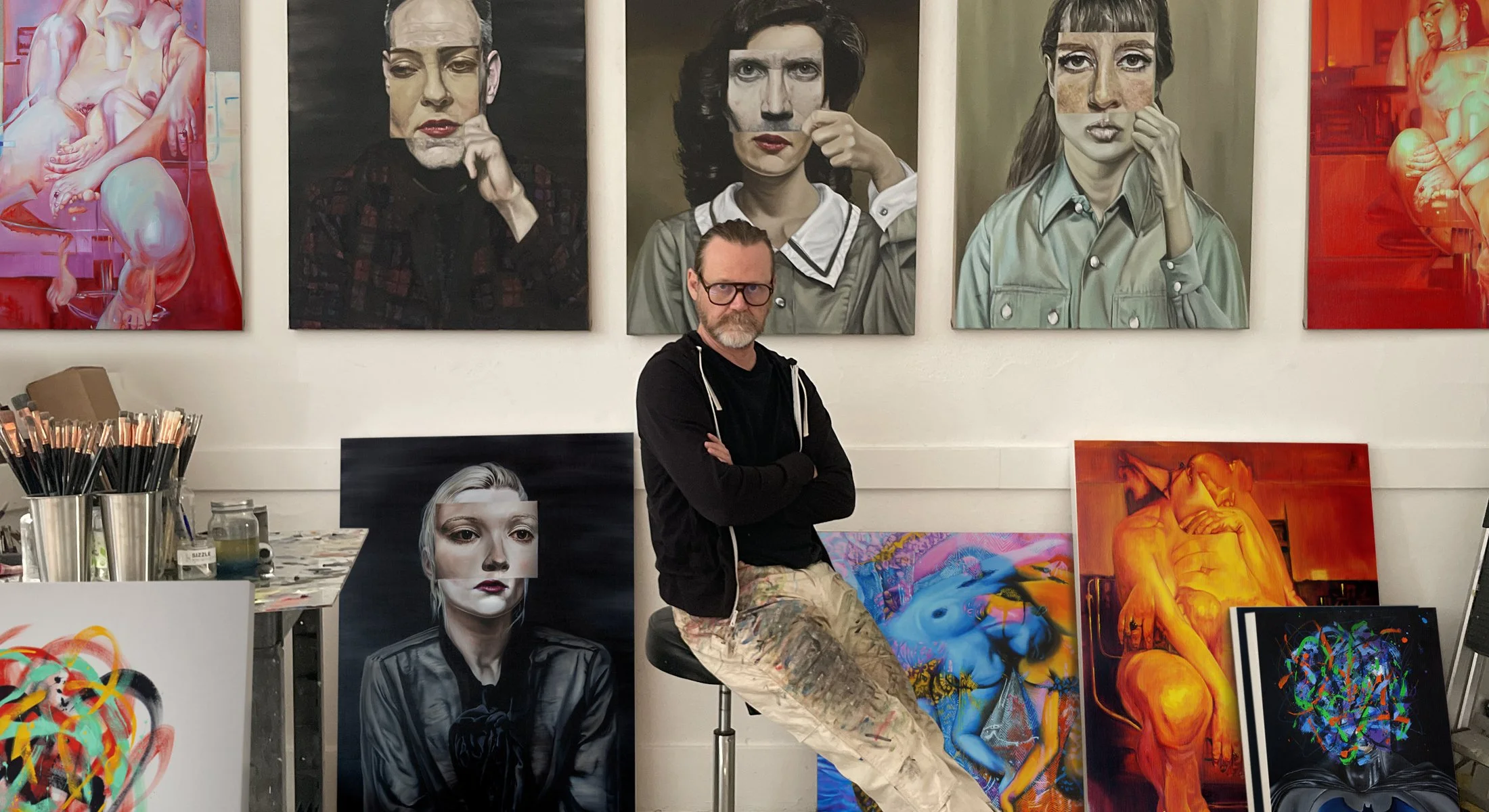 that move between representation and abstraction. Rather than offering fixed narratives, his paintings operate in spaces of tension—